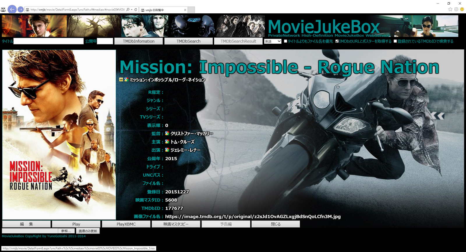 ミッション:インポッシブル/ローグ・ネイション を取得したら、ファンアートが表示しきれていません。