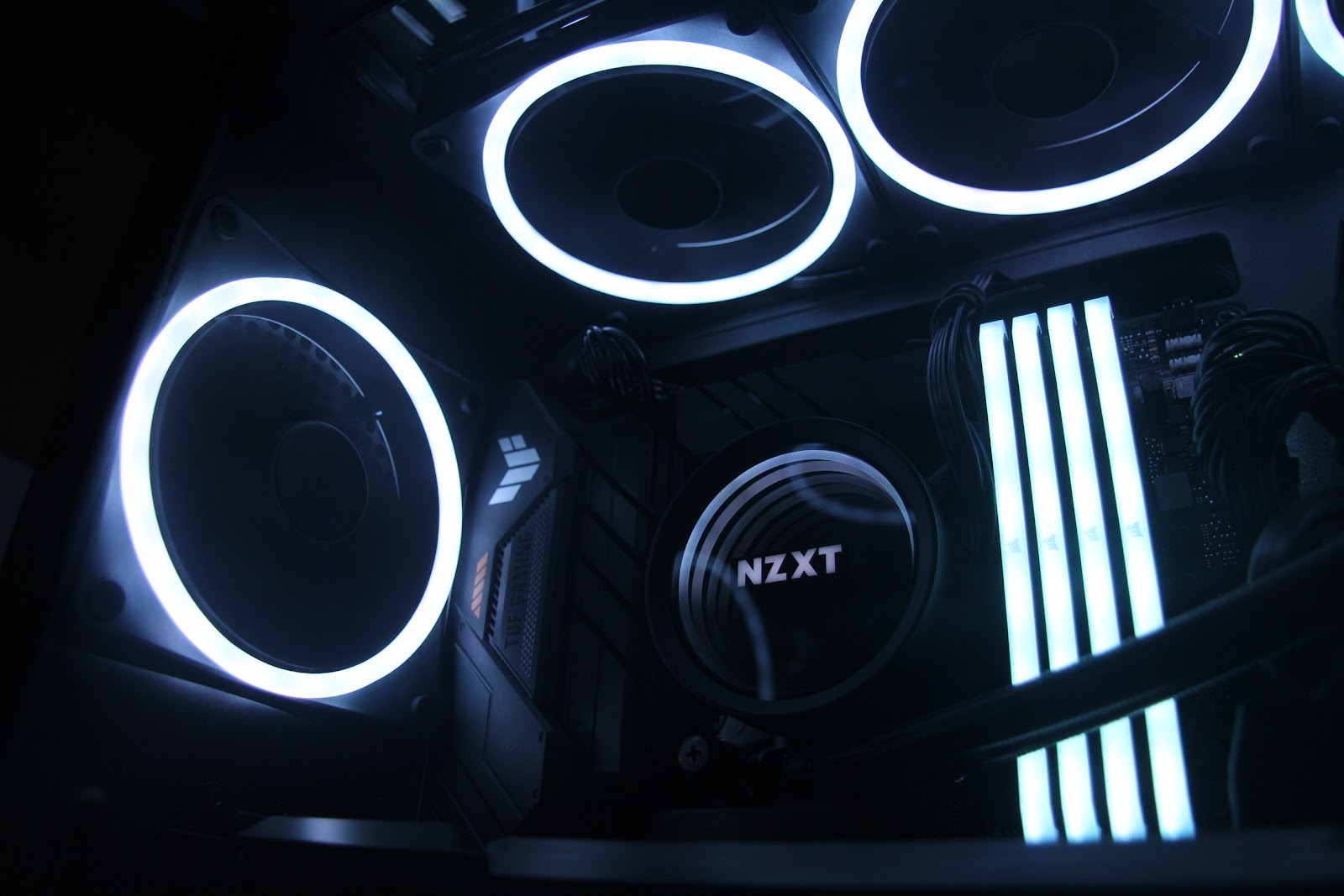 NZXTのRGB FANでまとめて光ります。私は通称ガンツ、嫁はトロンと呼んでいます。